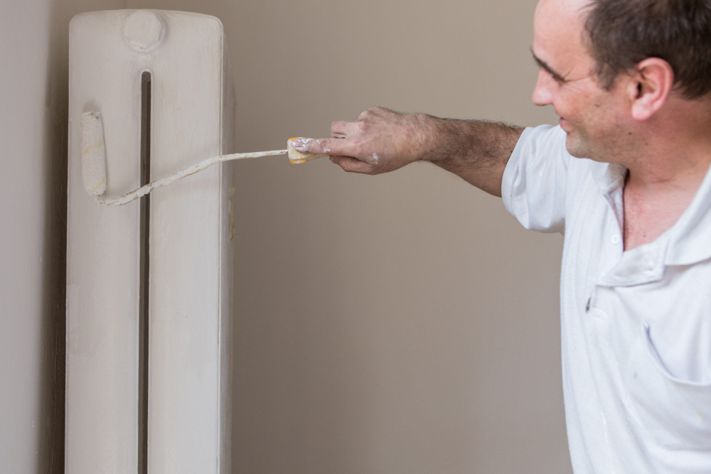Než se do renovace pustíte, topení vypněte a nechte vychladnout. Podlahu pod radiátorem a všechny další plochy, které nechcete zašpinit od barvy, pečlivě zakryjte ochrannou fólií nebo papírovým kartonem. Starý, popraskaný a odlupující se nátěr i zkorodovaná místa důkladně zbruste pomocí ocelového kartáče. Na zbylý povrch použijte brusnou houbu nebo smirkový papír, kterým se lépe dostanete mezi žebra. Poté radiátor omeťte od prachu a zbavte mastnoty. Omyjte ho hadříkem namočeným v teplé mýdlové vodě a na závěr opláchněte ještě čistou vodou.
