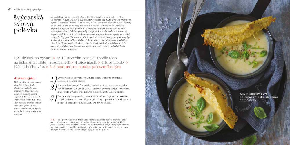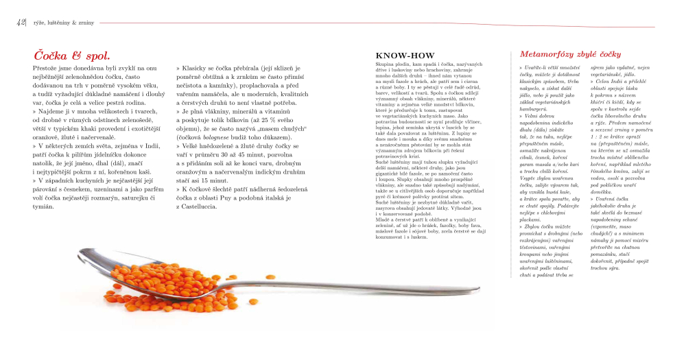 Základem knihy je přes 40 velkých receptů z české i světové kuchyně – z autorčiny domácí zkušenosti i rodinných pokladů, z cest i z inspirace zahraničními kuchaři – a k tomu autorka sype z rukávu bezpočet užitečných variací a „metamorfóz“, díky kterým budete moci chutně a vtipně „zrecyklovat zbytky“ a ještě rozšířit svůj kuchařský repertoár. Věnuje se také správnému uchovávání a základnímu zpracovávání potravin a efektivnímu využití energií a zdrojů. Propojuje osvědčené postupy „hospodyňkovských“ (pra)babiček vařících pro velké rodiny, bohatou vůni orientálních dálek i znovuobjevované a dnes zcela moderní přípravy vlastních domácích produktů.