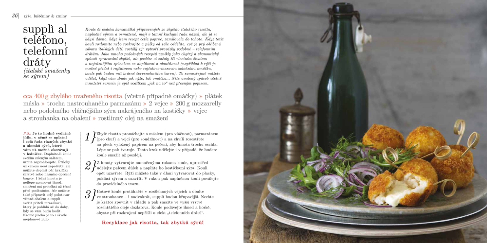 To, že se díky nim dají báječně zpracovat nejrůznější přebytky. Jitka Rákosníková představuje recyklaci jako tvůrčí odpověď na častý problém našich ledniček a spíží. Až 40 % vyprodukovaných potravin se totiž v dnešní společnosti nespotřebuje, nýbrž vyhodí, a zásadní část toho se děje právě v našich domácnostech.