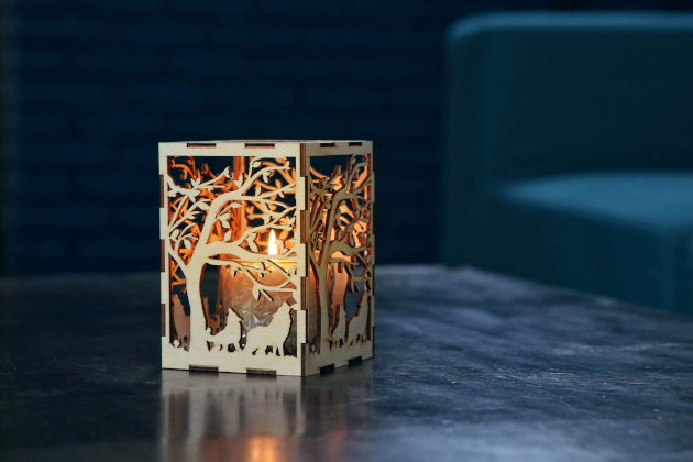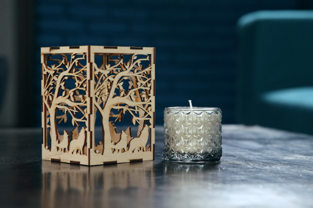 Co se týká svíčky, ta je vyrobená ze sójového vosku, který je přírodní, neuvolňuje hořením škodlivé látky a hoří oproti parafínu pomaleji. Romantiku při svíčkách si tak můžete užívat mnohem déle, než u klasické parafínové svíčky. Světlo s plamínků, které do interiéru proniká skrz svícen, je tvůrcem originální a intimní stínohry