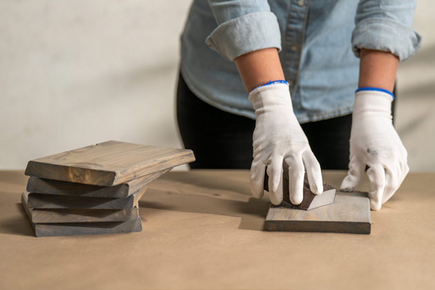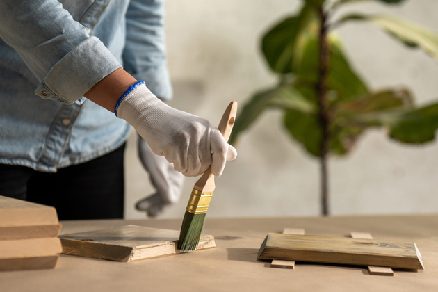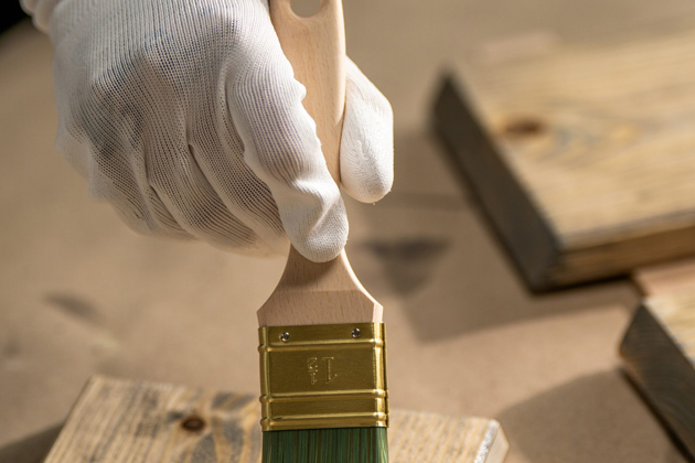 Než se pustíte do samotného natírání, prkénka nejprve ze všech stran zbruste. Následně je omeťte od prachu a dalších nečistot. Lazuru důkladně promíchejte a nanášejte ji lazurovacím štětcem po směru vláken dřeva ve 2–3 vrstvách, mezi kterými nechte odstup asi 7 hodin. Před každou další vrstvou povrch vždy jemně zdrsněte brusnou houbou.