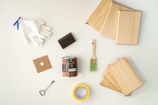 Tuto šestihrannou polici zvládne vyrobit i úplný začátečník. Potřebovat budete jen 6 stejně dlouhých dřevěných prkének (naše měla 20 cm), která budou po kratších stranách zkosená pod úhlem 30 stupňů. Dále si připravte Primalex Tenkovrstvou lazuru, plochý štětec (vel. 1,5″), brusnou houbu, krycí pásku, lepidlo na dřevo a ochranné rukavice.