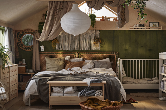 Rám postele Vevelstad (IKEA) se dvěma ratanovými čely, 180 × 200 cm, cena 5 670 Kč, www.ikea.cz