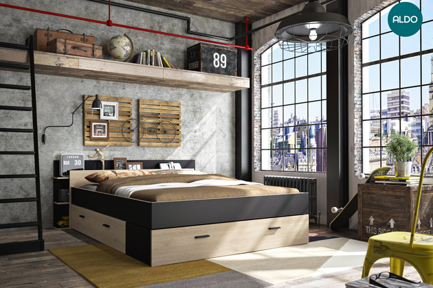 Postel Tonight black s úložnými zásuvkami a nástavcem v záhlaví postele, 140 × 190 cm, cena 20 252 Kč, www.nabytek-aldo.cz