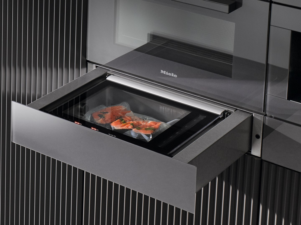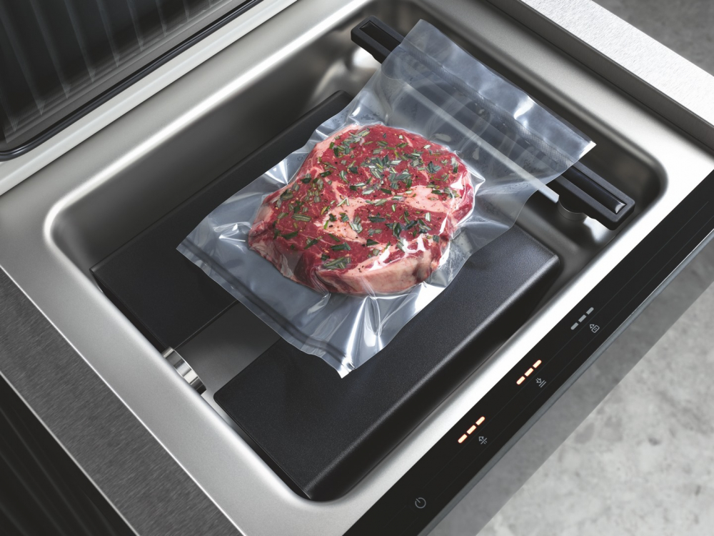 Skvělým pomocníkem pro šetrnou přípravu pokrmů metodou sous-vide v parních a kombinovaných parních troubách jsou vakuovací zásuvky Miele, s nimiž je příprava perfektně chuťově vyladěných pokrmů snadnější a komfortnější, než byste čekali.