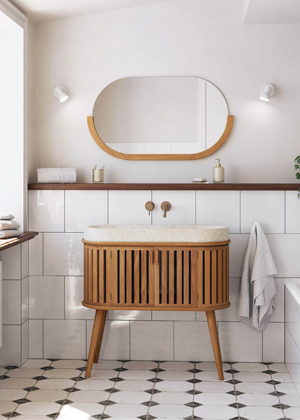 Foto: WestwingUmyvadlo Rokia se skříňkou z teakového dřeva, šířka 95 cm, výška 90 cm, cena 18 199 Kč , www.westwing.cz