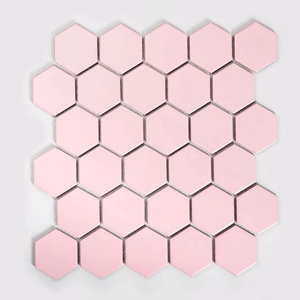 Foto: www.eshop.vinciprojekt.czStřední světle růžová mozaika na síti Hexagon, 27,1 × 28,1 cm (0,081 m2), cena 390 Kč za plato, www.eshop.vinciprojekt.cz