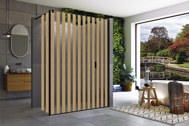 Z řady EASY (Ronal Bathrooms) je pevná samostatná stěna s krátkou otočnou stěnou, www.sanswiss.cz