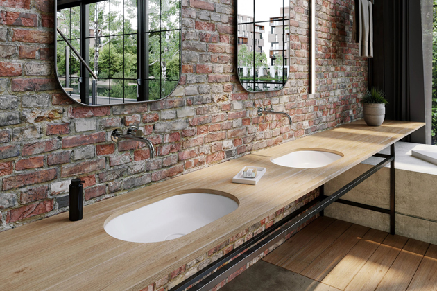 Umyvadlo Centro Duo (Kaldewei) k umístění pod desku, smaltovaná ocel, 61 × 38 cm, cena 18 970 Kč, www.eshop.perfecto.cz