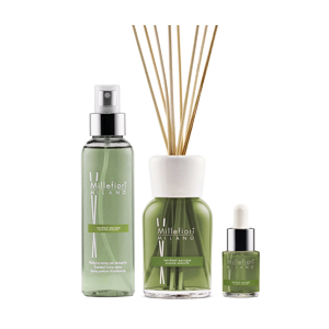 Foto: Millefiori MilanoVerdant Escape (Millefiori Milano), sprej do interiéru, cena 327 Kč, difuzéry, cena od 630 Kč, olej do aromalampy, cena 327 Kč, www.millefiori.cz