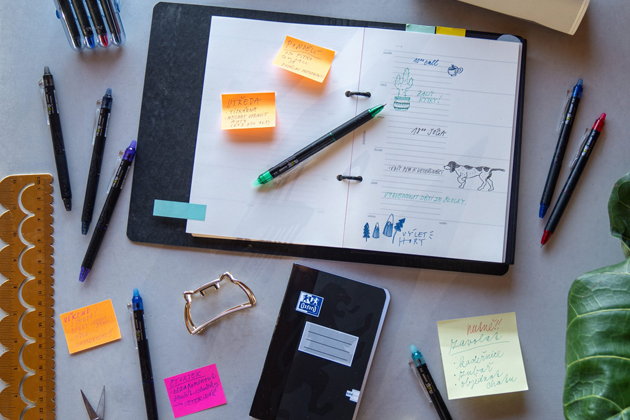 Utřídit si myšlenky a poznámky pomohou také myšlenkové mapy, navíc při použití různých barev pro nás bude orientace v nich mnohem jednodušší. Hned osm barev nabízí elegantní pero se stiskacím mechanismem Pilot FriXion Point Clicker, od klasické modré a černé až po jemnou růžovou nebo světle modrou. A kdo by chtěl v myšlenkové mapě škrtat? Gumovací roller dovolí tok myšlenek a nápadů měnit, přesouvat a barevně ladit doprovodné ilustrace. K tomu napomůže nejen jemný gumovací inkoust, ale i inovativní synergy hrot, který zajistí úhlednou, čistou a tenkou stopu. Pište a plánujte chytře s Pilotem! Gumovací roller pořídíte za 84,20 Kč.