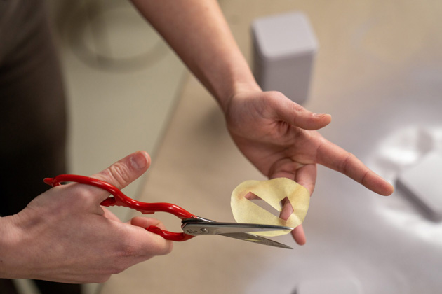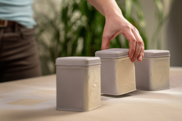 Z lepicí pásky vystřihněte šablony s čísly a po zaschnutí barvy je nalepte na dózu. Dbejte přitom na to, aby šablona na povrch dobře přiléhala a barva pod ni nezatekla. Číslo přestříkejte sprejem v druhém odstínu a nechte zaschnout 5–10 minut. Pak můžete pásku opatrně sloupnout.