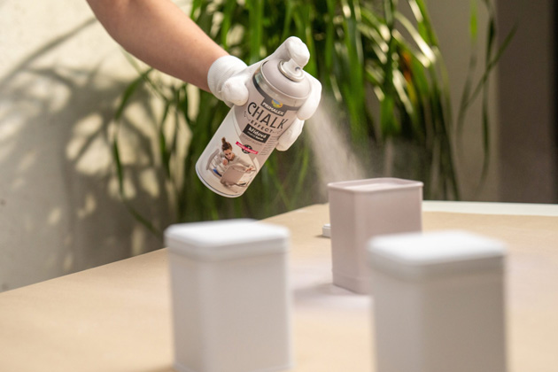 NÁŠ TIP: Pokud chcete zvýšit odolnost barvy, můžete dózy na závěr přestříkat ještě matným lakem ve spreji nebo použít Primalex spreje se třpytkami, které jsou dostupné ve variantě se stříbrnými, zlatými nebo barevnými třpytkami. |