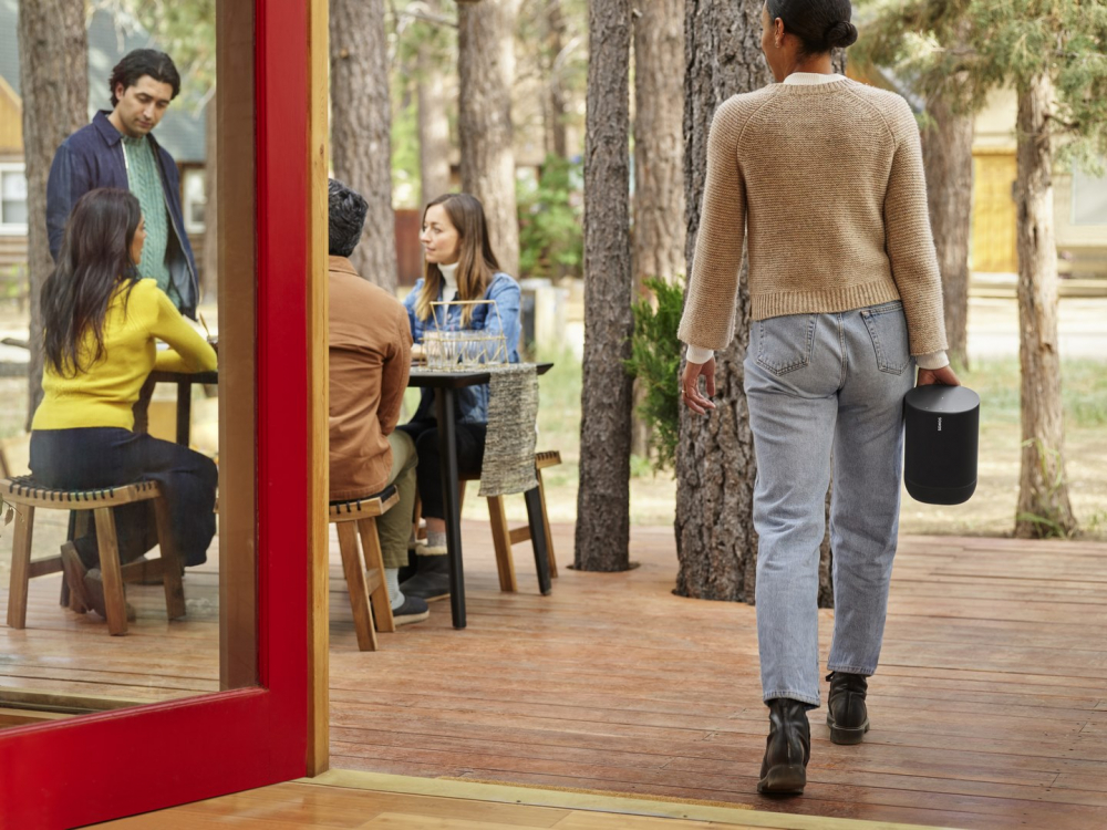 Sonos Move můžete se svým smart zařízením propojit přes Bluetooth a doma, v dosahu WiFi, zároveň připojit i do domácího Sonos multi-room systému.