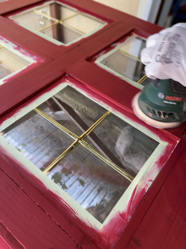 Konec nudným dveřím! Pokud se nebojíte barev, červené domovní dveře vám nepochybně projasní tmavé zimní dny. Původní nátěr dveří bylo potřeba zbrousit elektrickou bruskou až na dřevo.