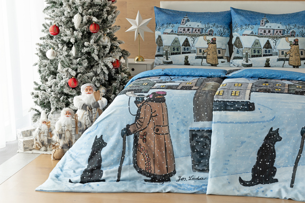 Zimní motivy kreseb Josefa Lady patří k Vánocům stejně neodmyslitelně jako vůně cukroví a světlo svíček. Textilní kolekce Matějovský z těchto ilustrací zachycuje atmosféru českého venkova, humor i hřejivost okamžiků, které známe z dětství. Všechny motivy jsou vytištěny nejmodernější digitální technologií a vynikají mimořádnou kvalitou zpracování. Letošní vánoční novinkou jsou také sady utěrek, které můžete krásně sladit s povlečením.