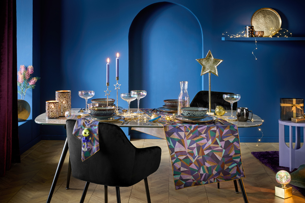 Modrá barva vnáší do interiéru pocit klidu a vyváženosti, ideální pro ty, kdo touží po sofistikovanější a klidnější vánoční atmosféře.