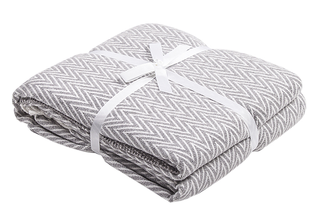 Deka Watson Grey se severským cikcak vzorem v odstínech bílé a šedé se bude také hodit jako stylový přehoz. Je opatřena třásněmi na dvou stranách, zbývající kraje jsou obšité. Má jemný povrch z přírodního materiálu (60 % bavlna, 40 % akryl), hustota tkaní 380 g/m2. Cena 990 Kč, www.matejovsky-povleceni.cz