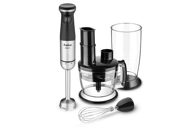 Tyčový mixér Amica BL 6016 s širokou výbavou má příkon 800 W a plynulé nastavení rychlosti. Můžete s ním sekat, šlehat a mixovat. Ve výbavě má tři nástavce na strouhání a krouhání, sekáček se sekací nádobou, mixovací nádobu a šlehací metlu. Vyrábí se v kombinaci nerez a černá. Cena 1 575 Kč, www.amica-group.cz