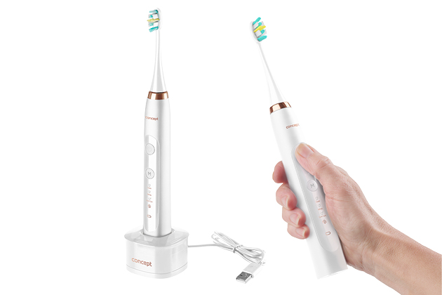 Sonický kartáček s pouzdrem Concept ZK7010 dosahuje rychlosti 84 000 pohybů/min. a díky vysokofrekvenčním vibracím účinně odstraňuje zubní plak i z hůře dostupných míst. Nabízí devět režimů čištění a čtyři vyměnitelné hlavice včetně 3D hlavic s trojrozměrným tvarem vláken pro maximální přizpůsobení zubům. Cena 999 Kč, www.concept.cz