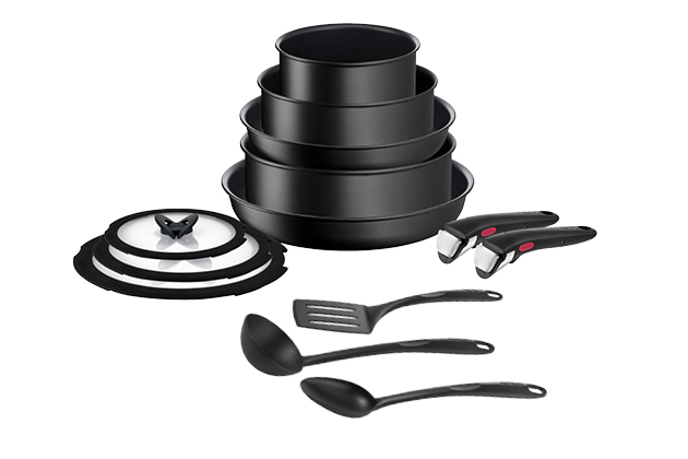 Třináctidílná sada nádobí a náčiní Tefal Ingenio Unlimited s odnímatelnou rukojetí umožňuje snadné skladování a použití v troubě. Má nový nepřilnavý povrch Titanium Anti-Scratch s vysokou odolností. Je až šestkrát odolnější než jiné nádobí a má také indikátor teploty Thermo-Spot. Cena 4 799 Kč, www.homeandcook.cz
