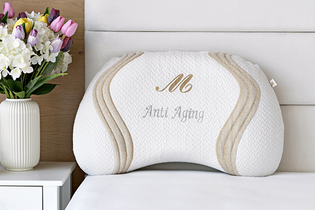 Jedinečný polštář Anti-Aging, který spojuje pohodlí a noční péči o pleť. Paměťová pěna Visco se dokonale přizpůsobí tělu a zajistí správnou oporu. Potah s obsahem koenzymů a vitamínů A, C a E podporuje regeneraci pokožky