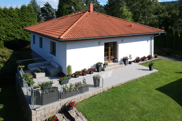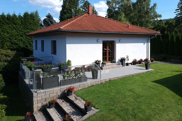 Klienti se rozhodli postavit dům na pozemku, kde se nachází upravená zahrada se vzrostlými stromy. Architekturu jejich budoucího domu se tedy snažili přizpůsobit již existující výsadbě a s výstavbou domu oslovili uznávanou firmu Ekonomické stavby. Vše proběhlo nad jejich očekávání. Lidé z ES jim byli nápomocni ve všem, od získání stavebního povolení až po vybavení hypotéky a po výběr správných stavebních materiálů. To vše bylo pro ně velkou úlevou.