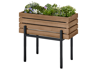 Foto: TchiboVyvýšený truhlík Elin (Tchibo), dřevo s certifikací FSC opatřené lazurou, konstrukce z práškově lakované oceli, cena 2 490 Kč, www.tchibo.cz