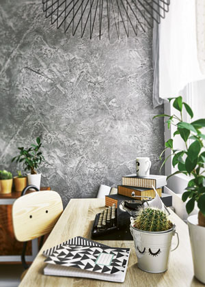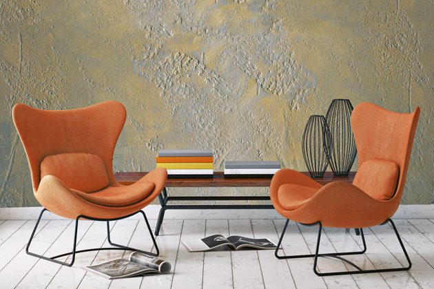 Někdy tapety ani interiérové barvy nemusí být plné zářivých barev a výrazných motivů. I jednodušší varianta například s důraznou texturou dodá prostoru trojrozměrnou hloubku a neokoukaný dramatický look.