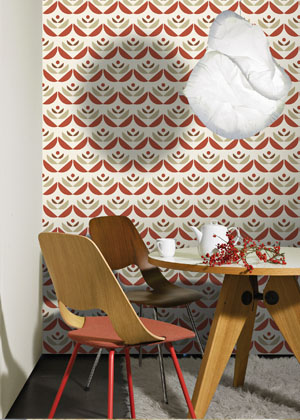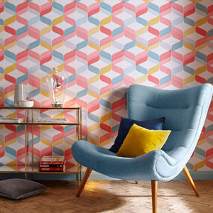 Vliesová tapeta s barevným retro vzorem Formation (Graham & Brown), matná, 1 000 × 52 cm, cena 1 869 Kč, www.vavex.cz