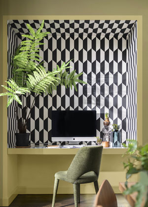 Vliesová tapeta Geometrická (Vavex), zelená, 1 005 × 53 cm, cena 598 Kč, www.hornbach.cz
