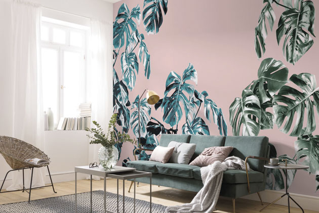 Vliesová fototapeta Pure Monstera Rosé (Komar), čtyřdílná, 400 × 250 cm, cena 7 125 Kč, www.hornbach.cz