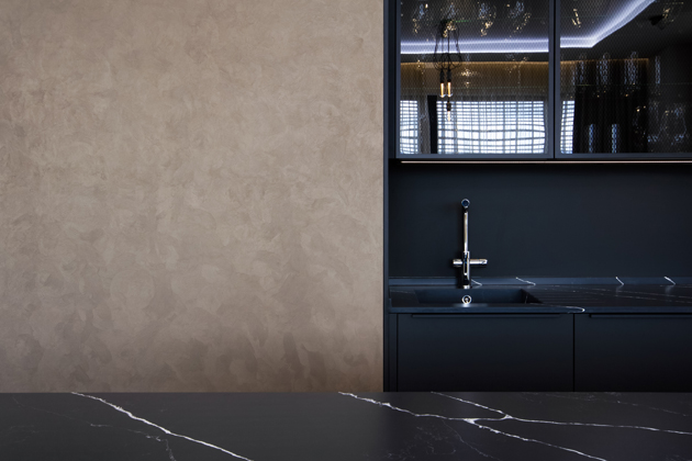 Pokud preferujete jemnější strukturu, stěrka Pitted vás okouzlí. Přestože je stále výrazná, na dotek je překvapivě hladká. Její elegantní vzhled se hodí do obývacích pokojů i ložnic.