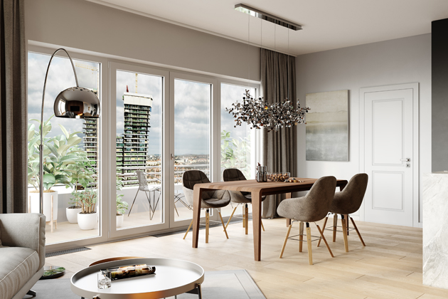 Z pohledu útlumu hluku je třeba brát v potaz také členění dveří. „Pro omezení šíření hluku mezi místnostmi je třeba zvolit dveře plné, bez prosklení, případně dveře s výplní z plné dřevotřísky. Jakmile se totiž plocha dveřního křídla částečně prosklí, dojde k snížení jeho zvukové izolace,“ radí Tomáš Pilský ze společnosti VEKRA. Důležitá je také správná montáž dveří. Mezi zárubní a stěnou totiž vzniká při instalaci mezera, kterou je třeba pěnou vyplnit po celém obvodu a nikoliv jen na několika bodech. Volnými prostory, které se mezi zárubní a stavebním otvorem bodovou aplikací vytváří, jinak volně prochází zvuk a zhoršuje se tak schopnost útlumu hluku celého dveřního kompletu.