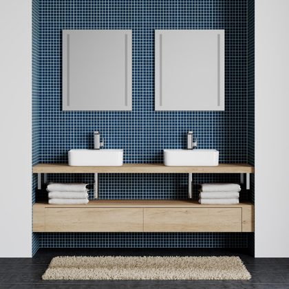 Pro malé či atypicky tvarované koupelny se skvěle hodí umyvadlové desky, jež se místu dokonale přizpůsobí a díky důmyslným vychytávkám zajistí i dostatek místa k uložení věcí. Umyvadlové desky nabízíme na míru už po jednom milimetru, a to v šířkách od 60 do 270 centimetrů. Využít prostor na maximum je možné díky bezúchytkovým doplňkovým skříňkám pod desku, které nabízíme v šířkách od 40 do 120 centimetrů s možností zakrytí postranního prostoru pomocí krycích desek. Tento designový a přitom velmi praktický koupelnový nábytek tak lze napasovat téměř mezi jakékoliv dvě stěny koupelnové niky,“ říká Ing. Petr Blažek, ředitel společnosti Dřevojas, tradičního českého výrobce koupelnového nábytku, a pokračuje: „Široká škála kombinací provedení, barev a rozměrů hraje v malém prostoru významnou roli. Kromě nejrůznějších dřevodekorů je možné volit i z palety tisíců barev vzorníků RAL a NCS, ať už v matné či lesklé variantě.“