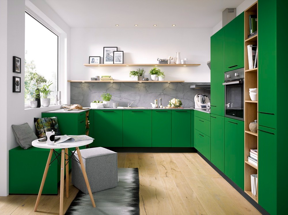 Přes aktuální trend šedých nebo černých a dlouhodobě trvající popularitu bílých kuchyní se těší oblibě i výrazně barevné sestavy.