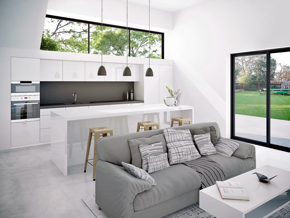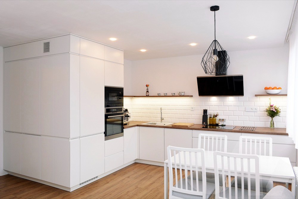 - k bílé sestavě je možné použít jakoukoli pracovní desku, podlahovou krytinu i výmalbu stěn