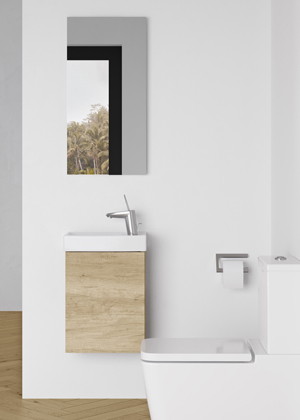 Mít na toaletě skříňku k uložení nezbytností je jistě výhoda, ale standartní koupelnový nábytek nebývá svými rozměry vhodný. Skříňky z kolekce HOST reagují na tuto výzvu svou hloubkou v rozmezí 20–30 centimetrů, což umožňuje jejich instalaci i do opravdu malých prostor. „Díky zavěšení skříňky na zeď bude i úklid podlahy hračka,“ dává tip Ing. Petr Blažek a dodává: „U kolekce HOST nabízíme možnosti výběru z velkého množství dekorů, díky čemuž můžete skříňku sladit i se zařízením hlavní koupelny. Otevírání můžete zvolit bezúchytkové push-to-open nebo si můžete vybrat z pěti různých úchytek podle svých představ.“ Koupelnový nábytek HOST doplňují tři typy keramických umyvadel, která jsou navržena s důrazem na prostorovou úspornost, funkčnost a moderní design. Model Gladi zaujme robustnějším vzhledem, čtvercovým formátem a praktickou odkládací plochou. Vizuálně prostor zvětšuje, což oceníte především v malých místnostech. Umyvadlo Mici v kompaktních rozměrech nabízí boční umístění baterie pro lepší manipulaci v úzkých místech a jeho robustní lem dodává umyvadlu osobitý vzhled. Pro milovníky minimalismu je zde umyvadlo Zoom s tenkostěnným provedením, jemnými liniemi a baterií umístěnou v rohu – ideální volba pro úzké, obdélníkové toalety. „Jednoduché linie umyvadel zároveň pomáhají i k jejich snadnější údržbě,“ radí Ing. Blažek z Dřevojasu.
