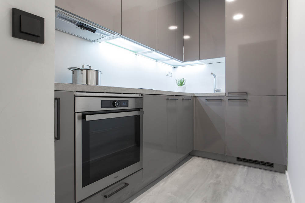 V omezených prostorách nebo garsoniérách se stále nejvíc využívá sestava uspořádaná do jedné linie. Pokud to prostor dovolí, je praktické využít kout sestavou do tvaru písmene L. U tohoto uspořádání, zejména jsou-li obě strany delší, je ale třeba počítat s většími vzdálenostmi jednotlivých zón.