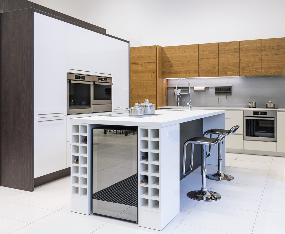 Kdo má rád zásoby různých nápojů, měl by při plánování kuchyně počítat s nutností jejich ukládání. Menší množství lahví lze elegantně upevnit do dekorativního stojanu. Pro větší zásobu je už ale třeba vyhradit v kuchyňské sestavě místo.
