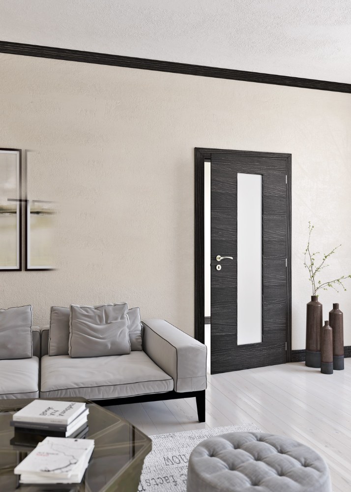 Tmavé dveře dokážou interiéru vtisknout luxusní a nevšední atmosféru. Při správném dávkování a citlivé kombinaci s ostatními prvky působí elegantně a stylově. Kromě lakovaných dveří v tmavých odstínech šedé či hnědé a tmavě tónovaného dřevodekoru jsou nyní aktuální povrchy imitující beton nebo textil. Efektně působí také dveře z tmavě zbarveného skla.
