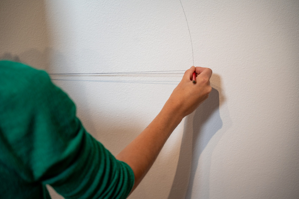Oblouky si nejprve předkreslete tužkou. Pravidelný půlkruh vytvoříte pomocí provázku, rovné linky pak pravítkem a vodováhou. Obrysy obtáhněte tenkým štětcem. Na zbylou plochu použijte malý váleček. Barvu naneste ve 2 vrstvách, mezi nimiž nechte odstup alespoň 6 hodin.