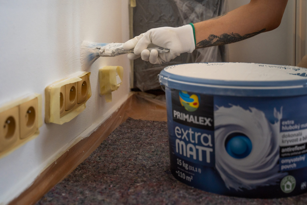 Nejprve si pokoj zaslouží vybílit. Výmalbu můžete svěřit do rukou odborníka ze společnosti Můj Adam, ale zvládnete to i svépomocí. Prostor vykliďte, větší nábytek stačí přesunout do středu místnosti a zakrýt fólií. Na podlahu použijte textilní fólii. Podlahové lišty a okolí vypínačů, zásuvek, dveří či oken oblepte malířskou páskou. Před malováním nezapomeňte také odmontovat police a lustr.