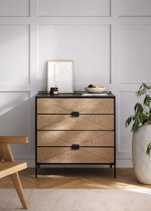 Foto: Westwing CollectionKomoda z mangového dřeva June (Westwing Collection), dvířka s jutovým výpletem, 90 × 91 cm, cena 24 199 Kč, www.westwing.cz