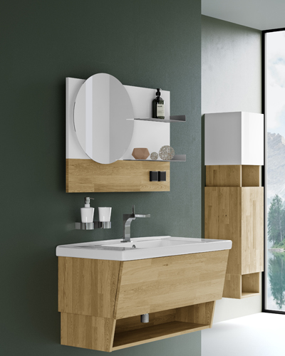 Další způsobem, jak si moderně a elegantně vybavit koupelnu a zároveň zůstat v úzkém spojení s přírodou, je pořízení nábytku z pravého dřeva. Přesně tuto možnost nabízí řada koupelnového nábytku Invence z dílny výrobce Dřevojas. „Současné interiérové trendy velí být blízko k přírodě a povyšovat koupelny z pouhých místností pro každodenní hygienu na přirozené oázy relaxace,“ říká Ing. Petr Blažek a pokračuje: „I proto jsme u našich závěsných skříněk z řady Invence vsadili na čisté linie a elegantně zemitý vzhled přírodního dubu, který propůjčí koupelně útulnou a delikátní atmosféru.“ Použití masivu ve vlhkém prostředí koupelny bylo dlouhou dobu nemyslitelné. Díky lakované povrchové úpravě ale nábytek Invence hravě obstojí i v tak náročných podmínkách, které v koupelnách běžně panují. Nápaditým vkladem je i jeho vzhled. Disponuje totiž kreativním designem s ustupující zkosenou hranou, která chytře a elegantně kopíruje ergonomii lidské postavy.