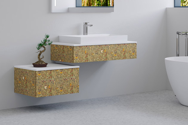 Rozkvetlá alpská louka překypující svěží vůní přírody… Přesně tento pocit vnese do vaší koupelny neotřelý koncept nábytku Organic, v jehož povrchu se skrývá skutečné luční kvítí. „Jedinečnost koupelnového nábytku Organic z řady MODULE spočívá v nanesení skutečných posečených květů z alpské louky na voděodolný HPL laminát a jejich zatření jen tenkou vrstvou laku. Díky tomu je možné vnímat nejen nerovnou strukturu slisované přírodniny, ale dokonce i vůni organického materiálu,“ vysvětluje Ing. Petr Blažek, ředitel společnosti Dřevojas, tradičního českého výrobce koupelnového nábytku. Při každém mytí rukou si tedy budete moci znovu a znovu vychutnávat květinové chvilky za pomoci hned tří smyslů - zraku, hmatu i čichu. Dekor Organic je možné využít jak na čelo, tak i na boky umyvadlové a doplňkové skříně. Vrchní plátek je však vždy v bílém laku, jelikož má za úkol chránit nábytek před působením vody a zároveň tak vytváří vzdušně působící alternativu k oblíbeným minimalistickým umyvadlovým deskám.