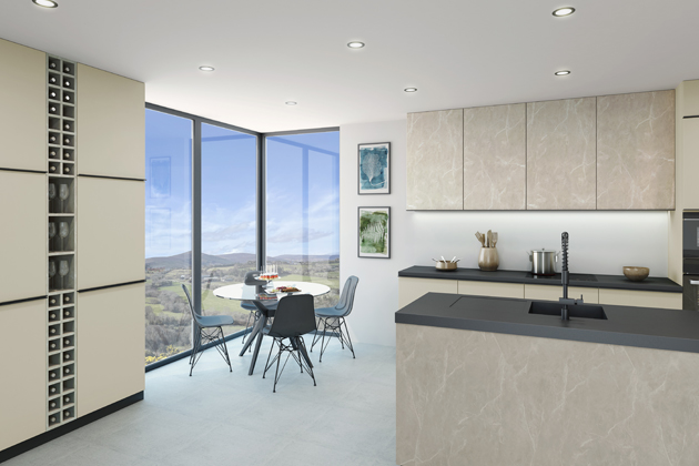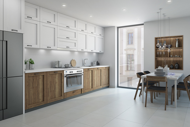 Perfektně napodobit masivní dřevo, a to nejen na pohled, ale i na dotek? Existují materiály, které to dokáží. Pokud chcete dostát přírodnímu konceptu a zároveň využít výhod moderních umělých materiálů, lví službu vám udělají foliovaná dvířka T.classic. „Dvířka T.classic jsou vyráběna vakuovým lisováním folie na podkladovou desku, díky čemuž vzniká jediný spoj na zadní straně dvířek a hrany tak netrpí zanášením nečistot a jsou odolné vůči vlhku,“ popisuje Martin Dusík z Trachey. Jejich výhodnou je poměrně nízká cena a propracovaná estetika, na výběr máte z široké škály barev a věrných imitací dřeva, kamene či mramoru. Dalším skvělým imitátorem dekorů jsou potom dvířka T.segment. Díky své realistické povrchové struktuře skvěle napodobují dřeviny a jejich retro design v podobě kazetových dvířek vám do kuchyně vnese nejen nádech přírody, ale i historie.