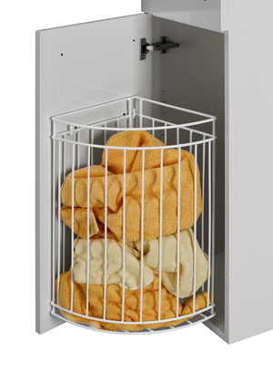 Praktickými pomocníky pro maximální využití prostoru jsou doplňkové skříňky s vestavěným košem na prádlo. Díky nim vám už koš plný prádla nebude v koupelně překážet! „Kromě toho, že koše vestavěné v doplňkových skříních šetří místo, tak navíc i díky svému drátěnému provedení umožňují prádlu dýchat. Koš je připevněn na zadní stranu čela dvířek, takže stačí skříňku pouze otevřít a ručníky či oblečení do něj vložit,“ říká Ing. Petr Blažek Dřevojasu. Pokud máte opravdu malou koupelnu a nemáte koš kam postavit, vestavná varianta problém vyřeší.