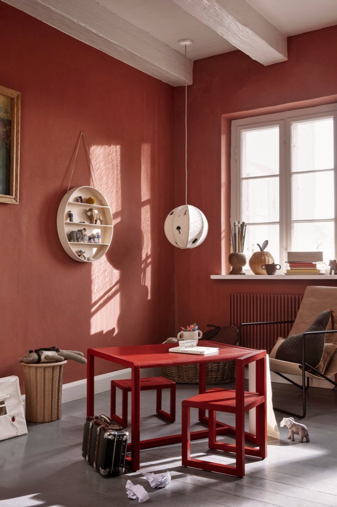 Bílé stěny jednoznačně představují vizuální čistotu a neruší, ale v okamžiku, kdy se vaše dítě zamiluje do oblíbené barvy, je namístě mu touto barvou pokoj vymalovat. Ve spolupráci s dítětem vyberte tlumenější varian-tu barvy, která nebude dominantou pokoje, ale zcela jistě mu dodá osobitý charakter a stane se pro dítě skutečným místem pohody. A co víc, bude se cítit sebevědomě, že se mohlo na výběru barvy podílet. Hledáte-li barvy, které podporují kon-centraci, vsaďte na modrou či zelenou, ale pozor, důležité je správné nadávkování. Možností, jak je promítnout do dětského pokoje, je několik. Můžete vymalovat stěnu za pracovním stolem, pořídit barevný nábytek nebo doplňky. Použitím tabulové barvy můžete stěny nebo povrch nábytku proměnit v kreativní zóny, na které si děti mohou psát a kreslit podle libosti. Pořídit se dají v široké barevné škále.