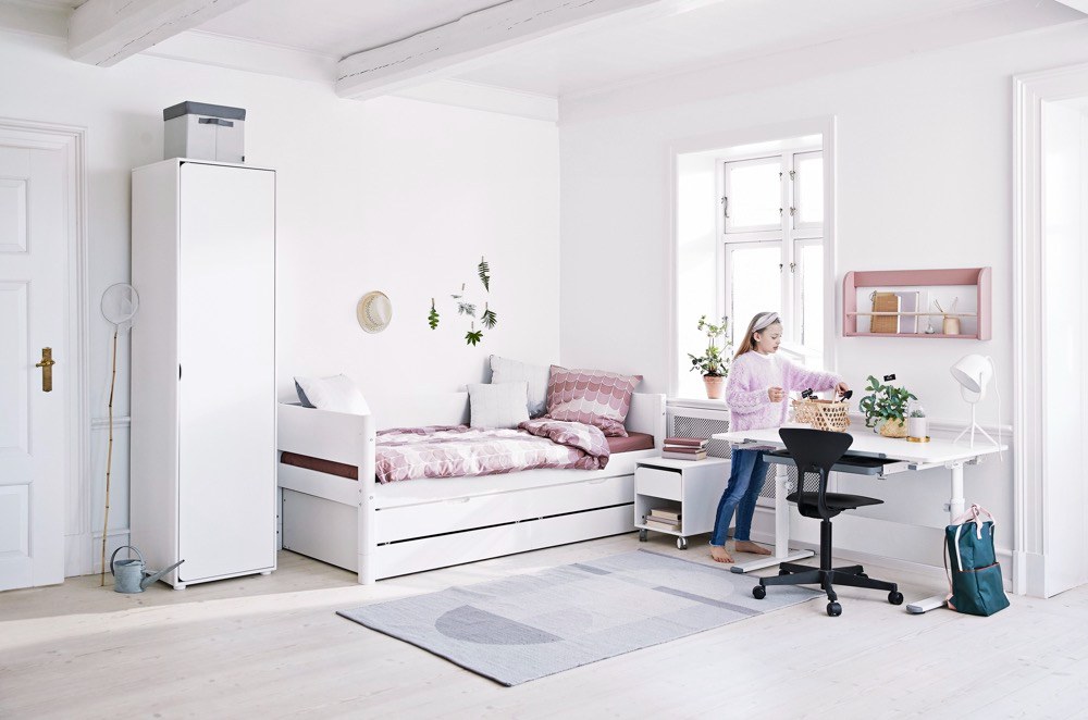 Dítě by mělo mít možnost „vypnout“ a nesoustředit se jen na školu a povinnosti, ale také si hrát a odpočívat. Nabízí se jednotlivé zóny – hrací, pracovní a spací – od sebe opticky oddělit. Skvělým nástrojem jsou barvy, nábytek nebo textilní dekorace. Pokud pokoj sdílejí sourozenci a chcete každému dopřát svůj prostor, myslete na to, že dětský pokoj by měl vypadat jako jeden celek. Nábytek plnící předělovací funkci by měl být stylově podobný.